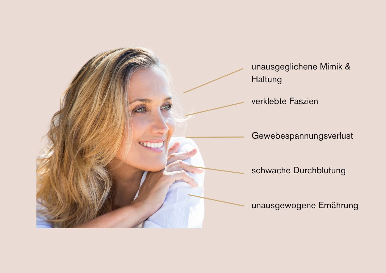 Der Fokus liegt speziell auf der Körper- und Faszienarbeit. Wir drehen am Rad der Zeit, damit Du Deine jugendliche Ausstrahlung – Dein Gesichts-Jugenddreieck- wieder zurückbekommst und das alles ohne Botox und hautschädigende Säurekuren oder Hautbarriere verletzende krasse Gerätebehandlungen.